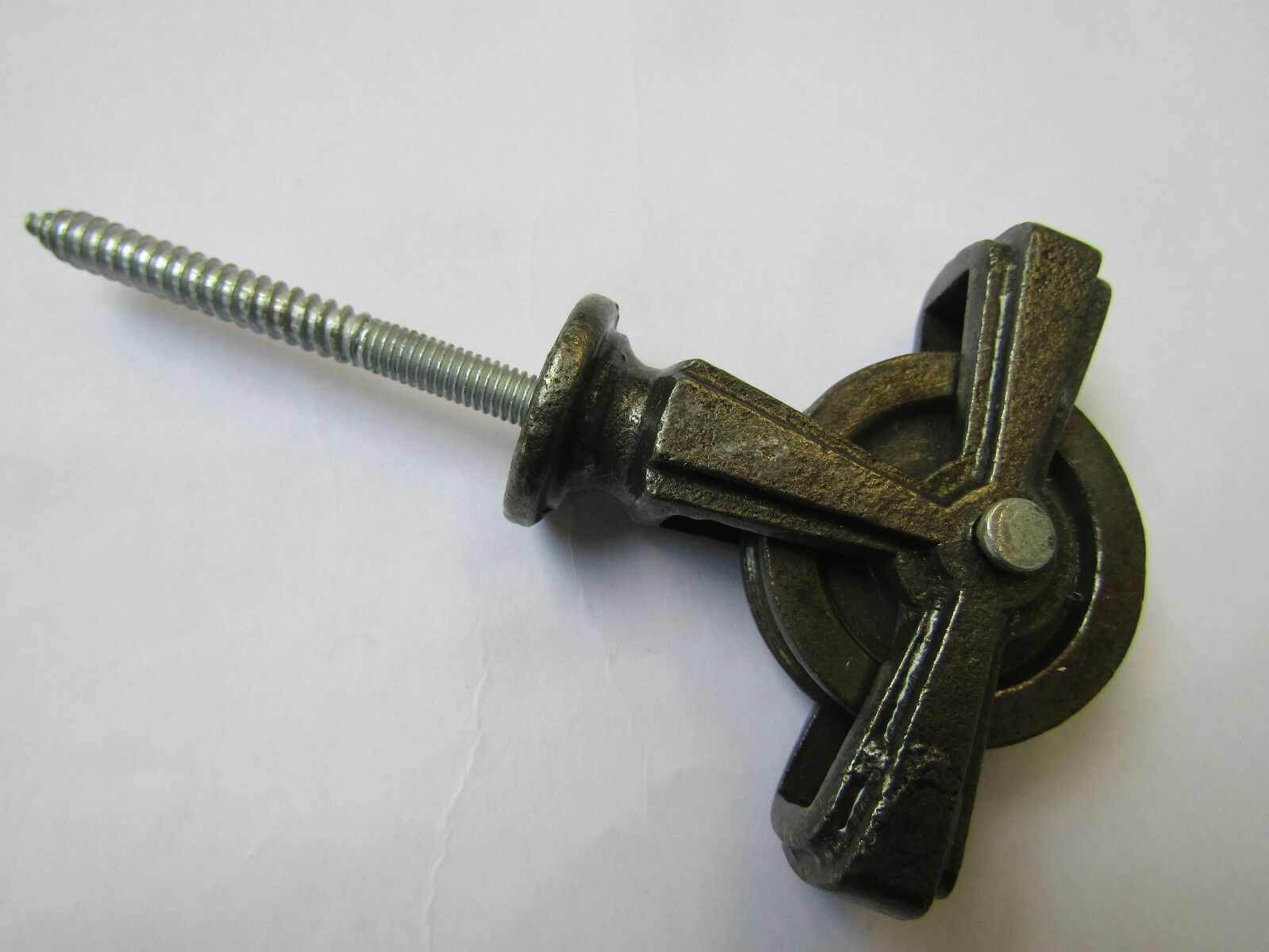 Schroef in plafond droogrek enkele katrol antiek ijzer