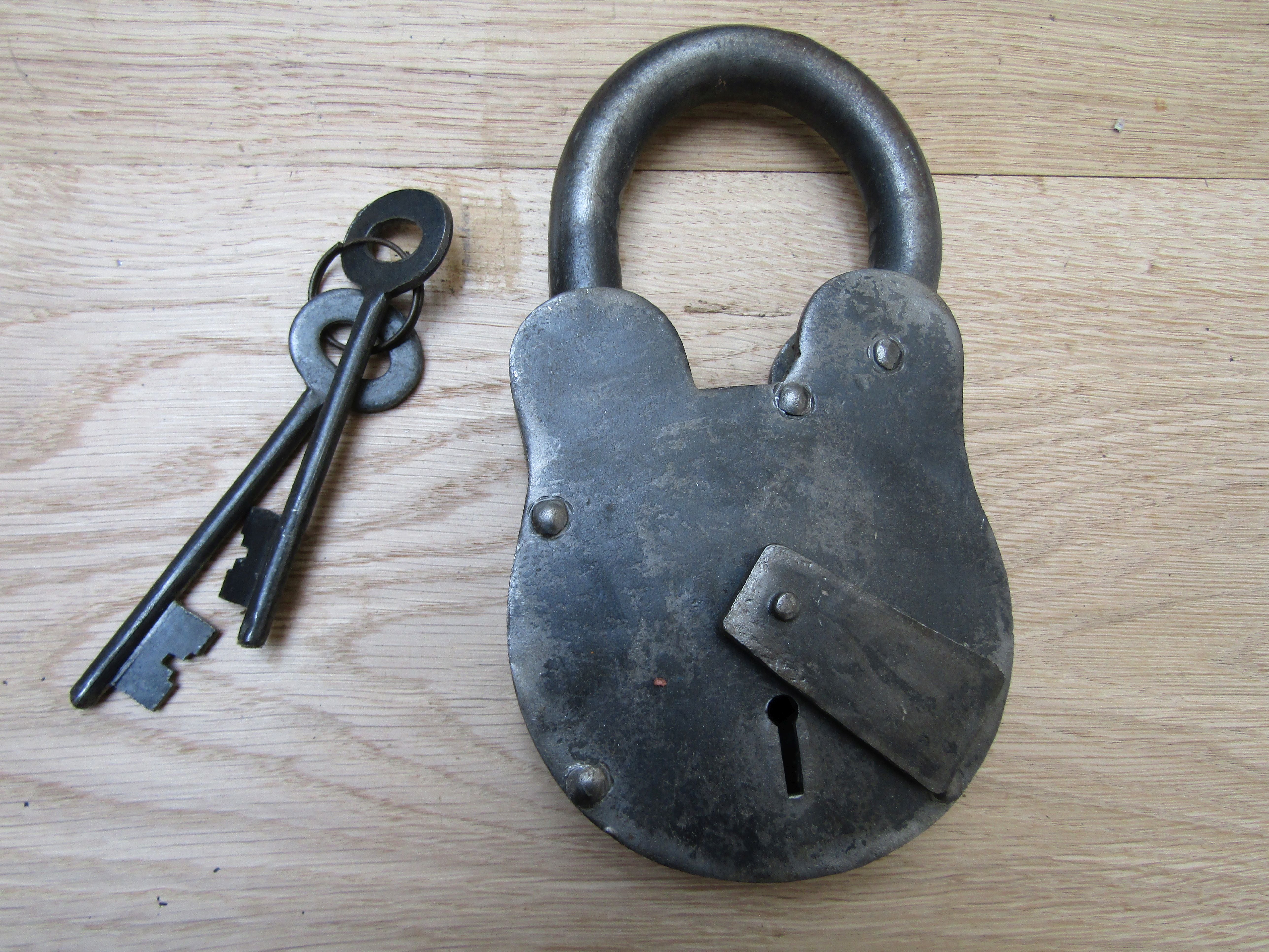 Gietijzeren hangslot vintage rustiek victoriaans oud piraten schatkist kofferdeur