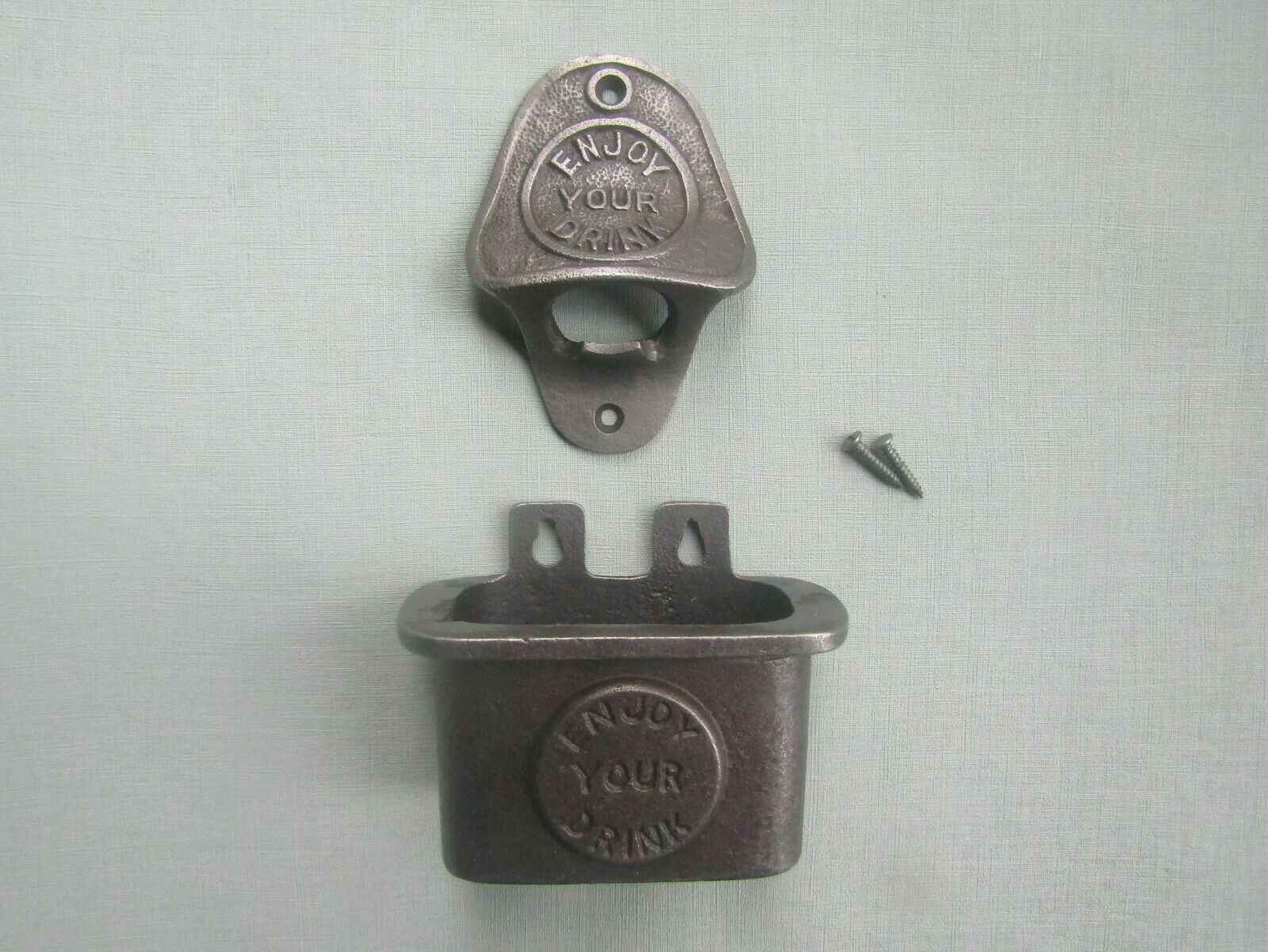 Ouvre-boisson et récupérateur de capsules en fonte « Profitez de votre boisson »